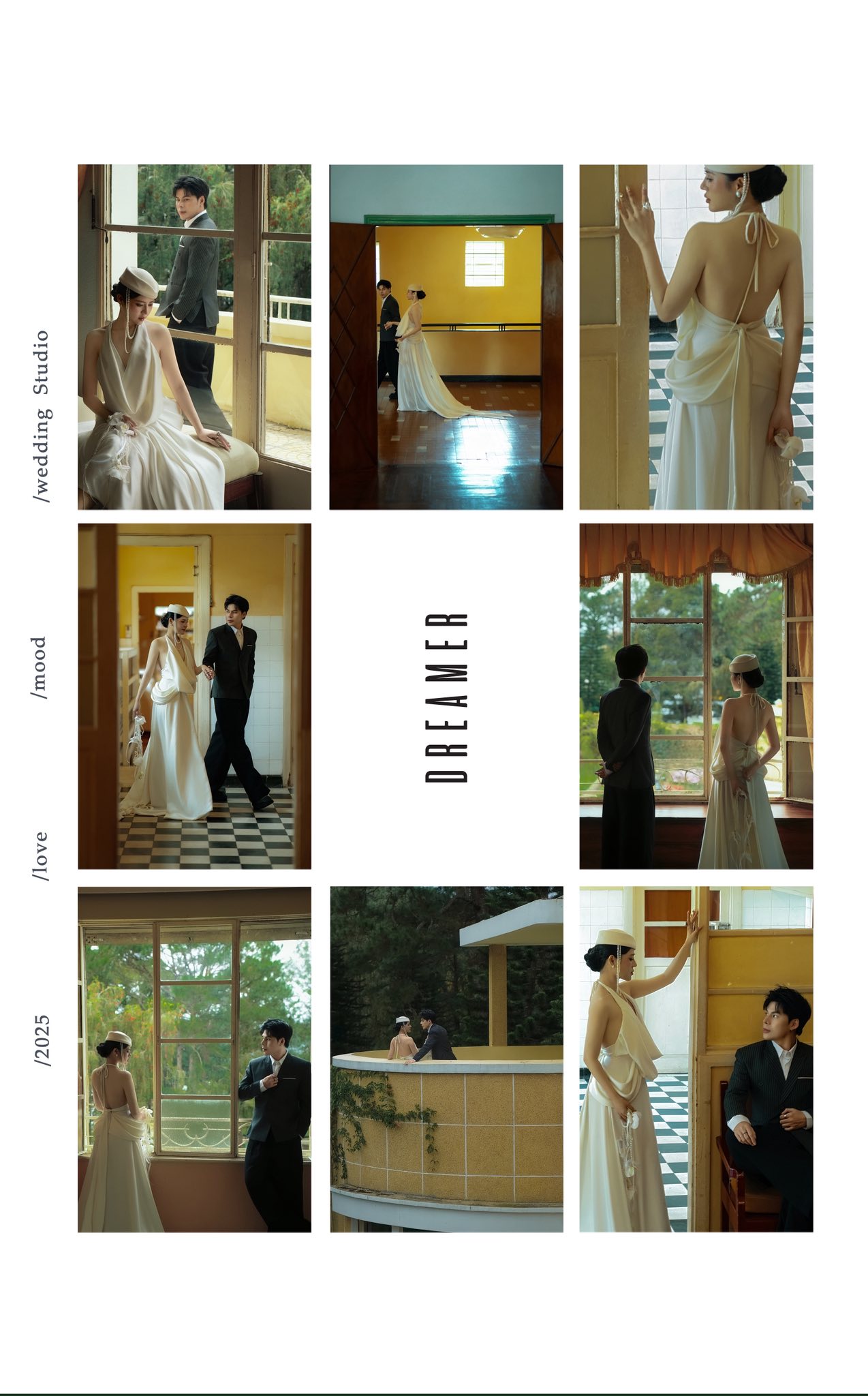 “**Dreamer**” — một bản tình ca mang hương hoài cổ giữa lòng Đà Lạt. Cô dâu như nàng thơ bước ra từ giấc mộng xưa, chú rể trầm tĩnh và đầy phong nhã. Mỗi khung hình là hơi thở của ánh sáng, của tình yêu dịu dàng mà bền bỉ.
