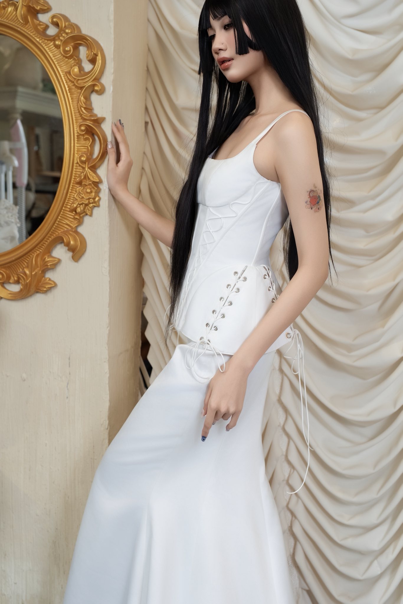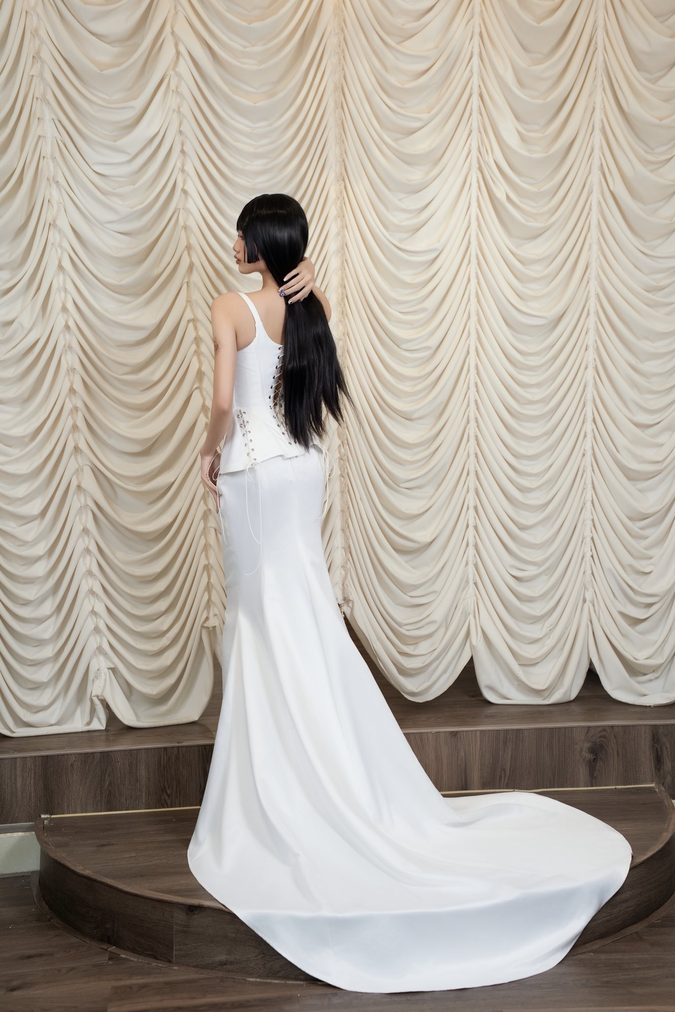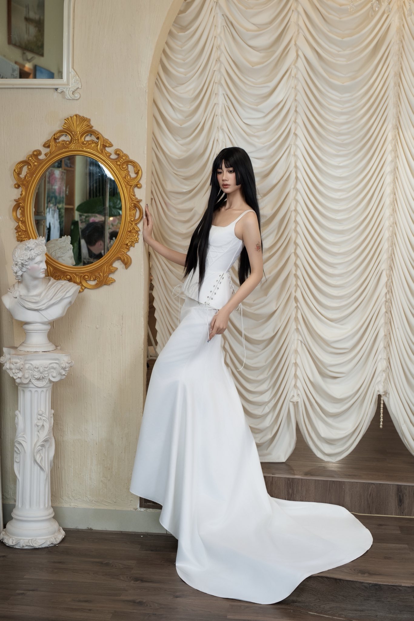 Tinh giản mà kiêu sa Chiếc váy cưới được thiết kế theo dáng corset ôm gọn vòng eo, tôn trọn đường cong thanh thoát. Chất liệu satin cao cấp mềm mượt, kết hợp phần đuôi váy buông dài thướt tha, mang đến vẻ đẹp vừa hiện đại, vừa lãng mạn cho nàng dâu. 💍👰