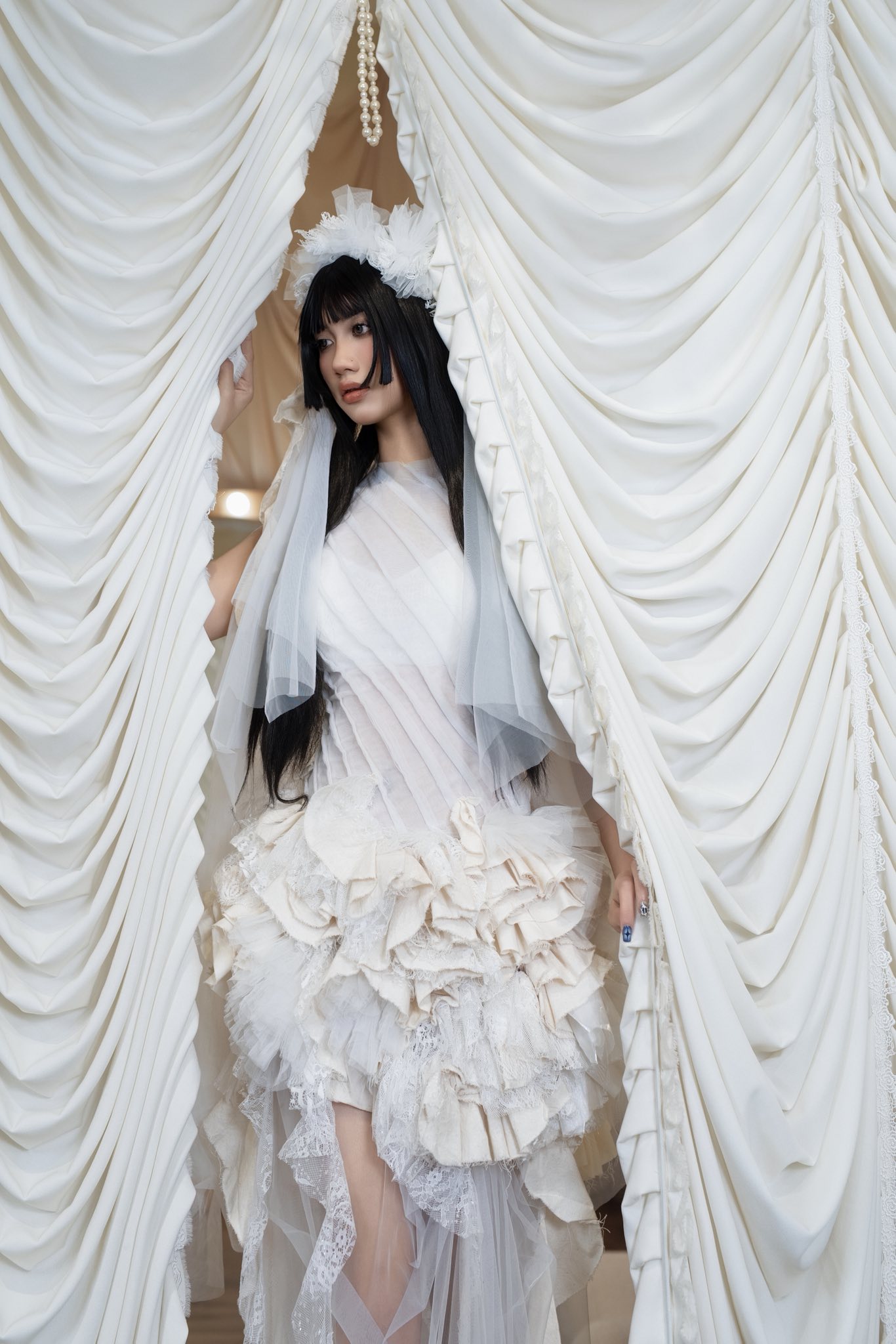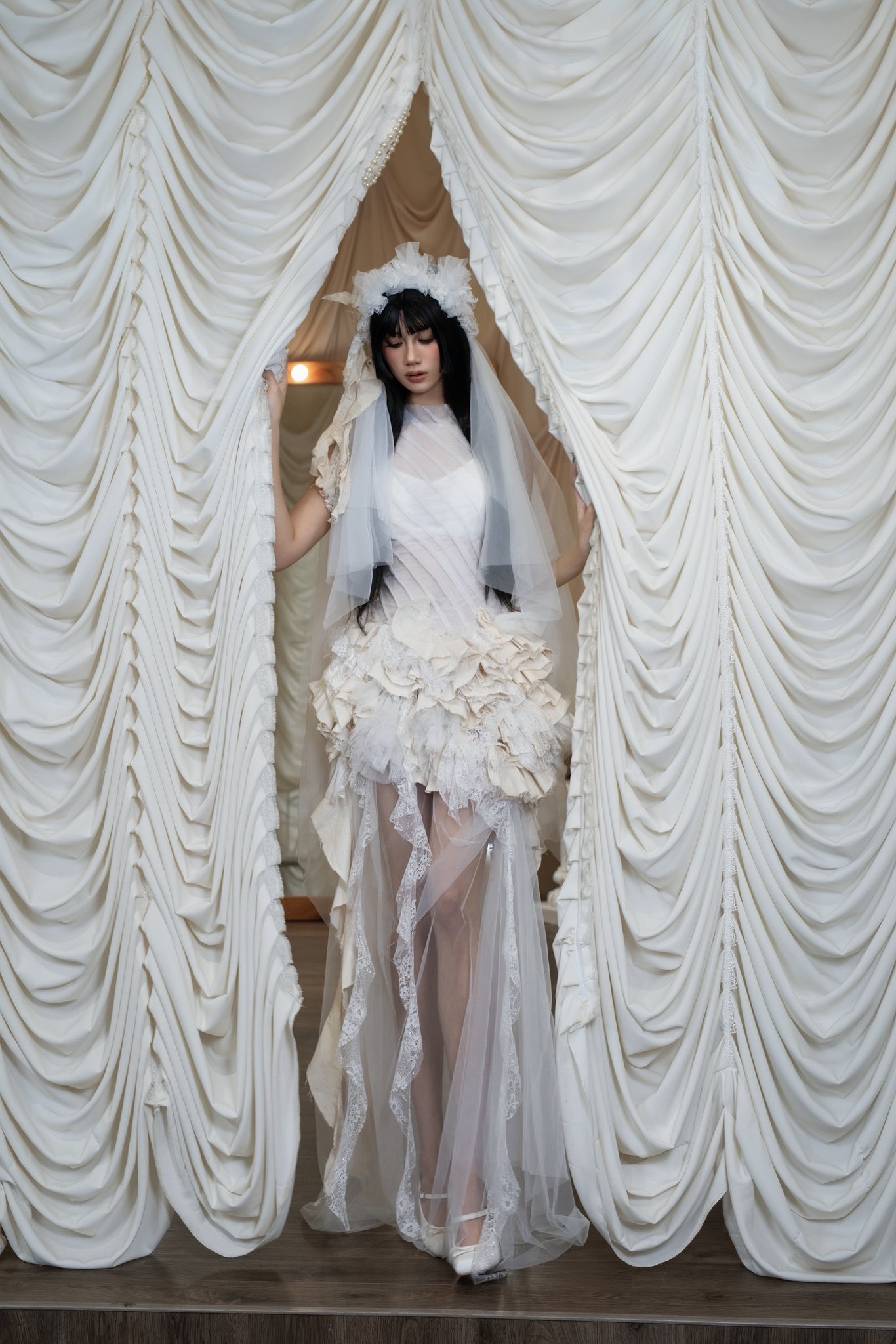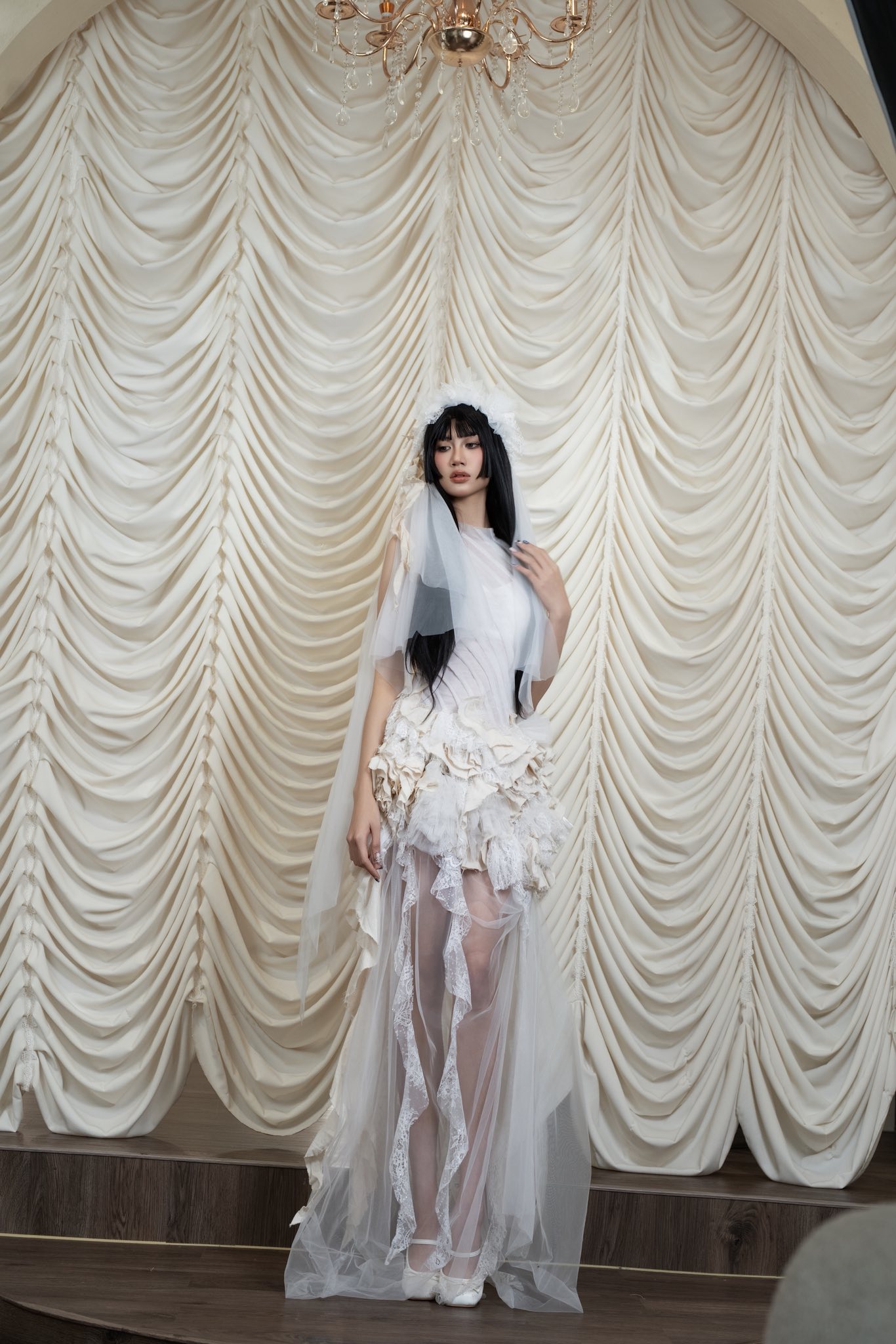 Moonlit Ruffles – Những gợn sóng dưới ánh trăng Chiếc váy cưới mang vẻ đẹp vừa hoài cổ vừa hiện đại, được tạo nên từ lớp voan mỏng, ren tinh xảo và những tầng bèo xếp nhún cầu kỳ. Phần thân corset ôm dáng nhẹ nhàng kết hợp cùng tà váy xuyên thấu thướt tha, vừa gợi cảm vừa thanh thoát. Tông trắng ngà điểm chút sắc vintage khiến tổng thể thêm phần lãng mạn, tựa như nàng dâu bước ra từ một khúc tình ca cổ điển. 💍 Moonlit Ruffles – dành cho nàng muốn khoảnh khắc lên ngôi thật khác biệt và khó quên.